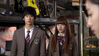 Hye Mi berbalik dan pergi meninggalkan Jin Kuk dengan marah. Baru beberapa langkah berjalan, Hye Mi kembali lagi. Ia melepas headphone dan menendang kaki Jin Kuk.
